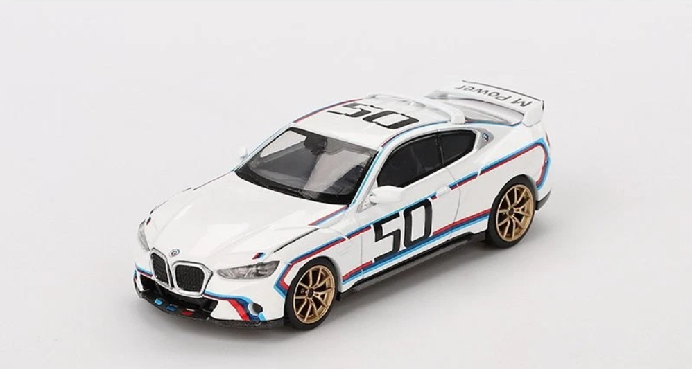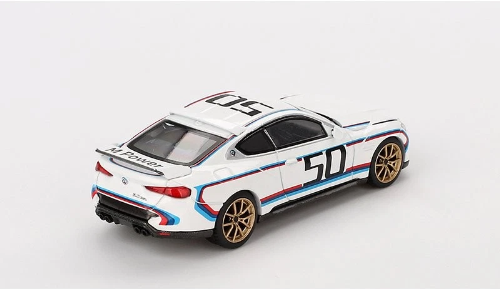 BMW M4 (G82) 3.0 CSL – 2023, weißes Modell im Maßstab 1:64 vom Hersteller Mini GT