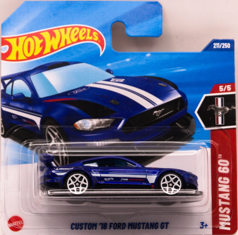 CUSTOM '18 Ford Mustang GT, blaues Modell im Maßstab 1:64 vom Hersteller Hot Wheels