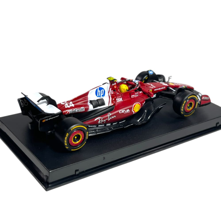 Das Modell besteht aus Metallguss mit Kunststoffteilen und ist dadurch robust und optisch ansprechend. Präzise nachgebildete Details – darunter der Fahrerhelm, Front- und Heckflügel, die Aufhängung und die Sponsorenlogos – lassen das Miniaturmodell das Aussehen des echten Rennwagens originalgetreu wiedergeben.