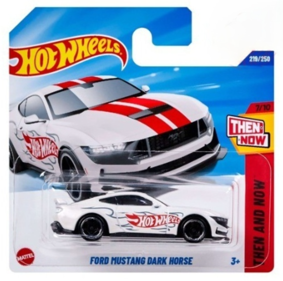 Ford Mustang Dark Horse-Modell, weiß/rote Streifen, hergestellt im Maßstab 1:64 von Hot Wheels