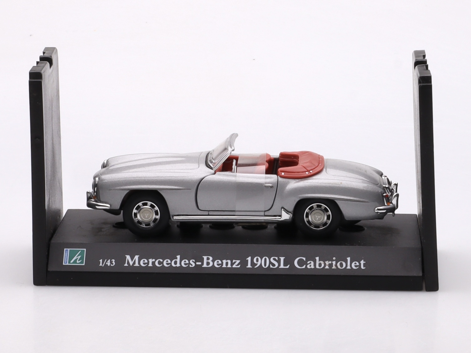Smukła, harmonijna sylwetka, charakterystyczny przód z dużą gwiazdą Mercedesa oraz subtelne linie nadwozia zostały oddane z dbałością o detale, a srebrny lakier podkreśla elegancki, klasyczny charakter modelu. Otwarta wersja cabrio nadaje miniaturze lekkości i idealnie oddaje ducha motoryzacji sprzed dekad. Skala 1:43 sprawia, że model doskonale pasuje do każdej kolekcji klasycznych samochodów.