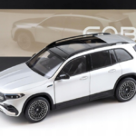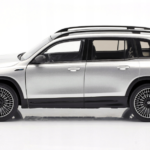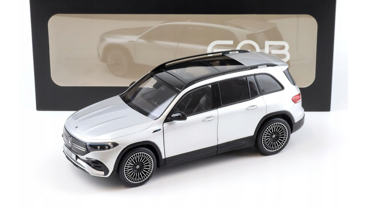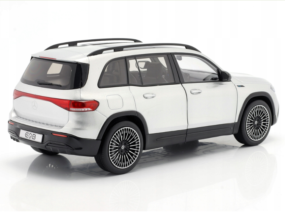 Model Mercedes-Benz EQB H243 z 2021 roku w eleganckim kolorze Iridium to idealna propozycja dla miłośników nowoczesnych, elektrycznych SUV-ów o premium charakterze. Miniatura w skali 1:18, wykonana przez uznaną firmę NZG, wyróżnia się znakomitą precyzją odwzorowania oraz dbałością o każdy detal charakterystyczny dla oryginału. Subtelne, irydowe wykończenie podkreśla luksusowy styl pojazdu, a starannie oddane linie nadwozia, realistycznie wykonane reflektory LED i nowoczesne elementy stylistyczne nadają modelowi wyjątkowej autentyczności. Całość dopełniają efektowne felgi oraz harmonijna, dynamiczna sylwetka, dzięki czemu model prezentuje się niezwykle okazale w każdej kolekcji.