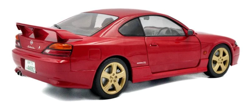 Dieses Modell repräsentiert das Spitzenmodell S15 Spec-R Aero, ausgestattet mit einem Aerodynamikpaket, das der Karosserie einen sportlichen Charakter verleiht. Die markanten Scheinwerfer, die aggressive Motorhaubenlinie, der Spoiler und die sportlichen Räder wurden sorgfältig detailliert nachgebildet. Der leuchtende Lack in Flare Red unterstreicht die dynamischen Linien dieses legendären Coupés perfekt.