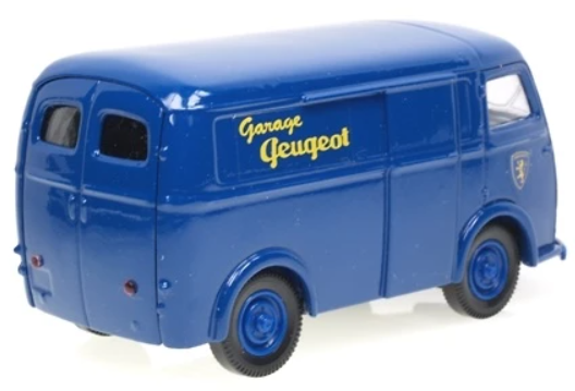 Kolekcjonerski model Peugeot D4A z 1964 roku w skali 1:43, wyprodukowany przez firmę Solido. Miniatura przedstawia klasyczny francuski samochód dostawczy, który w latach 50. i 60. był powszechnie wykorzystywany przez rzemieślników, służby miejskie oraz małe firmy, stając się ikoną użytkowej motoryzacji tamtej epoki.