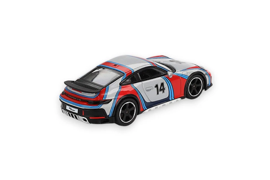 Model Porsche 911 (992) Dakar – 2024, ice gray rally tribute 1978 wykonany w skali 1:64 przez producenta Mini GT