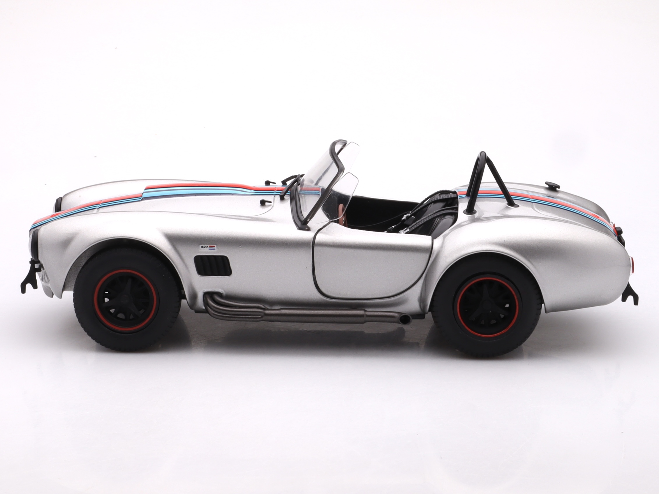 Długa maska, szerokie nadwozie i klasyczne proporcje Cobry zostały wiernie odwzorowane, a elegancki srebrny lakier podkreśla ponadczasowy styl tego wyjątkowego auta. Duża skala 1:18 pozwala docenić dopracowane detale i muskularną sylwetkę, z której słynie wersja 427 MKII.