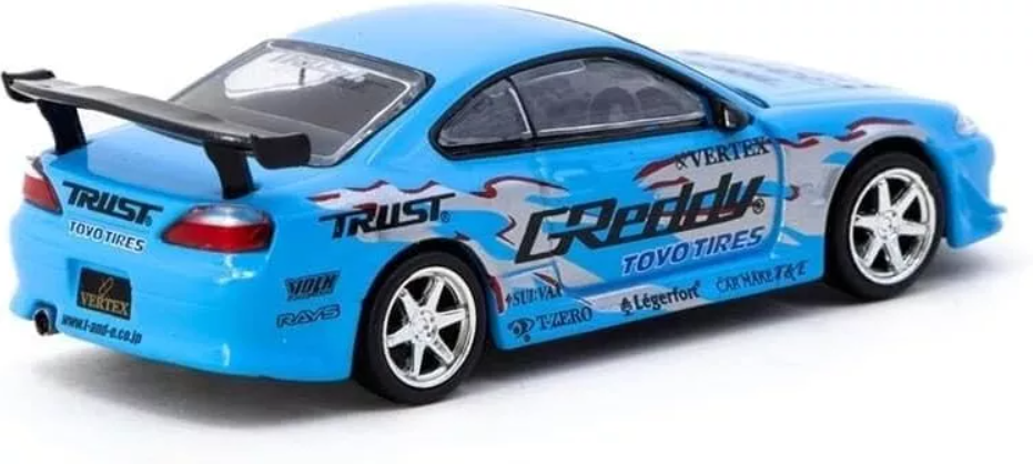 Vertex Nissan Silvia S15 *GReddy*, blaues Modell im Maßstab 1:64 vom Hersteller Tarmac Works