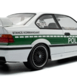 The car was finished in the classic white and green Polizei livery, with distinctive markings, a blue roof light, and police lettering on the sides. The aggressive body lines of the M3 version—with flared wheel arches, sporty bumpers, and a low stance—were rendered with meticulous attention to detail.