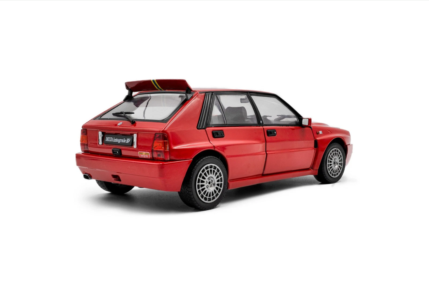 Lancia Delta HF Integrale to samochód, który zdominował rajdową Grupę A i na zawsze zapisał się w historii motorsportu. W wersji red model Solido prezentuje się niezwykle efektownie – intensywna czerwień świetnie podkreśla sportową sylwetkę i charakterystyczne poszerzenia nadkoli. Miniatura łączy w sobie klasykę, agresję i włoski styl, dzięki czemu doskonale sprawdza się jako centralny punkt kolekcji.