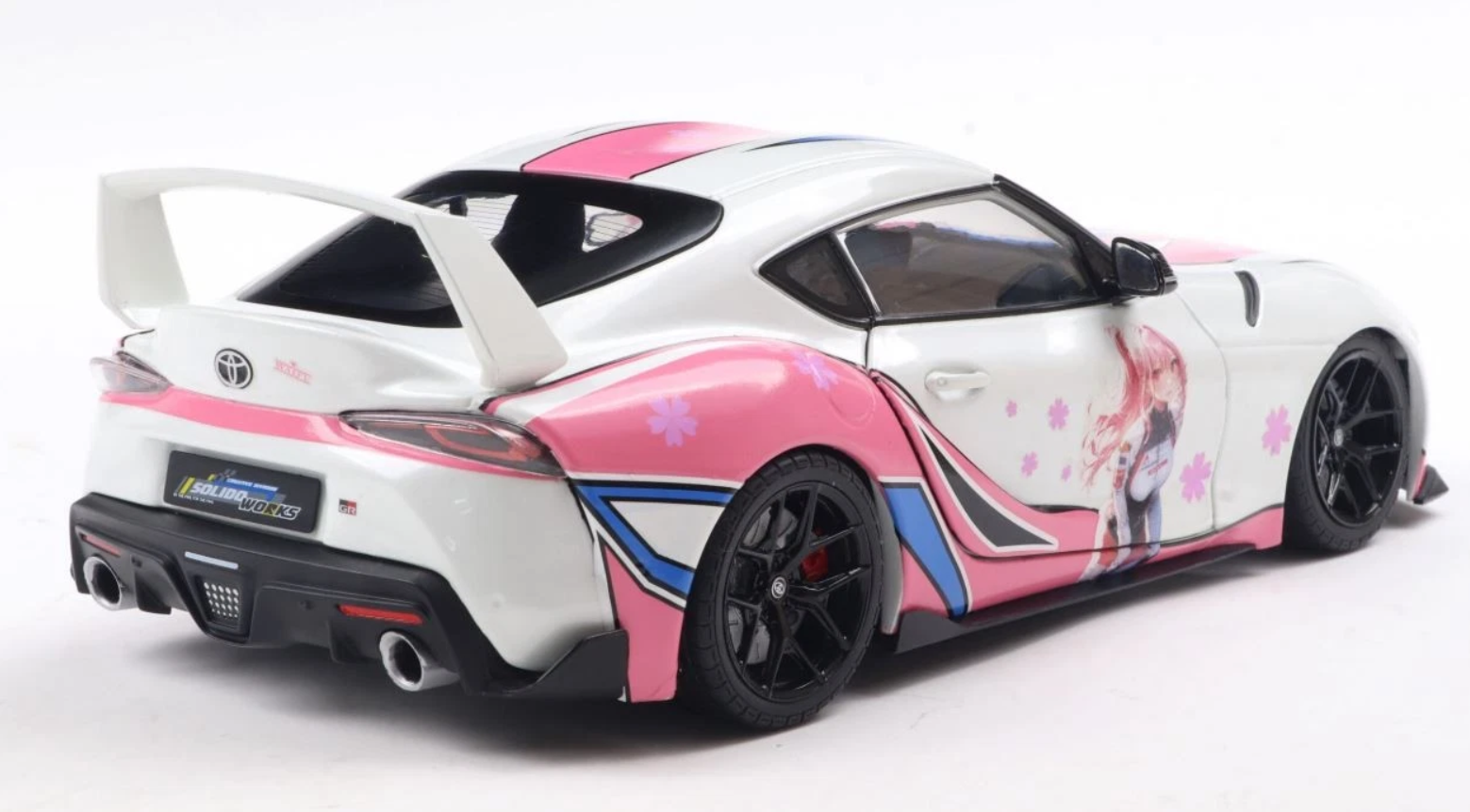 This 1:18 scale model combines the aggressive styling of the GR Supra with a unique Itasha paint job, characteristic of Japanese cars with pop culture motifs. It's not just a car—it's a moving poster for otaku culture and street-tuning enthusiasts.