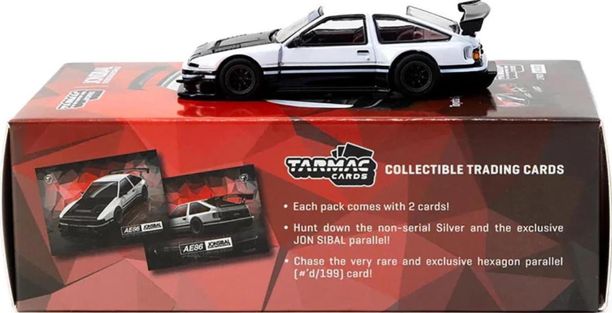 Model Toyota Sprinter Trueno AE86 Widebody by Jon Sibal, white/black wykonany w skali 1:64 przez producenta Tarmac Works