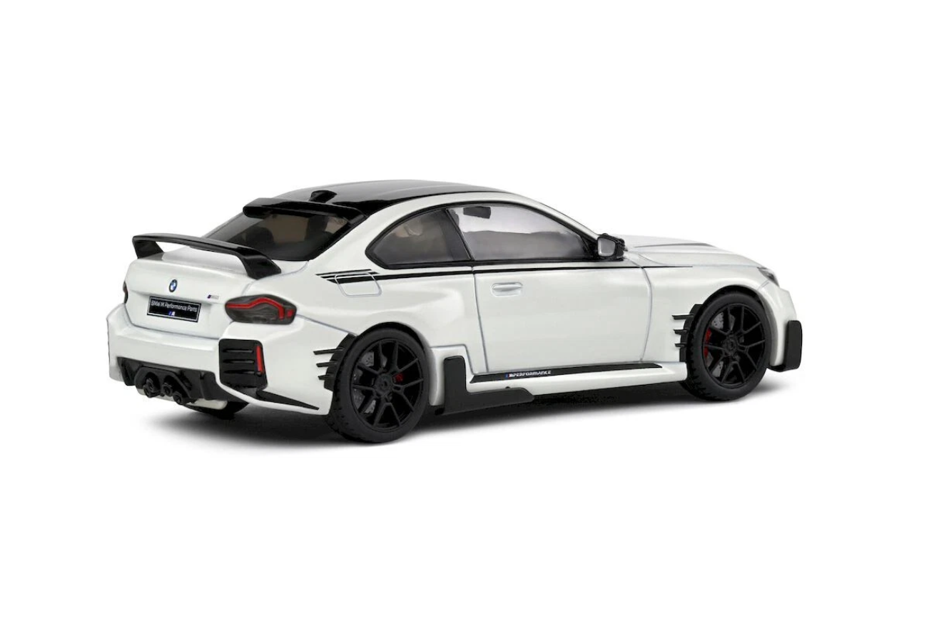 Charakterystyczne dla G87 kanciaste linie nadwozia, muskularne nadkola, szeroki grill i aerodynamiczne detale zostały precyzyjnie odwzorowane mimo niewielkiej skali. Model wyróżnia się czarnymi felgami, sportowymi lusterkami i subtelnym tylnym spojlerem.