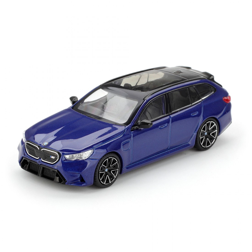 Model BMW M5 (G99) Touring – 2024, blue metallic wykonany w skali 1:64 przez producenta Mini GT