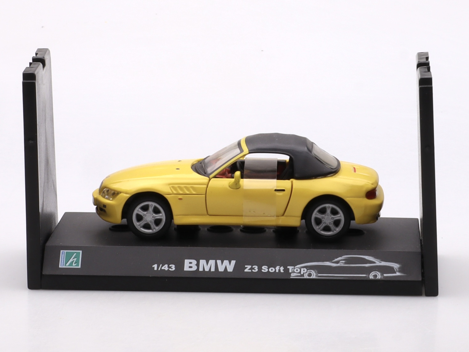 Długi przód, krótkie zwisy i klasyczne proporcje Z3 zostały wiernie odwzorowane, a żółty lakier nadaje modelowi sportowego, dynamicznego wyglądu i sprawia, że wyróżnia się w każdej kolekcji. Zamknięty miękki dach (soft top) podkreśla realistyczny, drogowy charakter auta. Skala 1:43 idealnie pasuje do kolekcji klasycznych modeli osobowych.