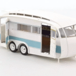 TAKCitroën DS 19 to ikona designu i innowacji – słynący z hydropneumatycznego zawieszenia oraz futurystycznych linii nadwozia, stał się symbolem postępu technologicznego lat 50. Zestaw został uzupełniony o przyczepę Henon Caravane, która idealnie oddaje ducha caravaningu tamtej epoki. Całość tworzy harmonijną kompozycję stylu, komfortu i elegancji.