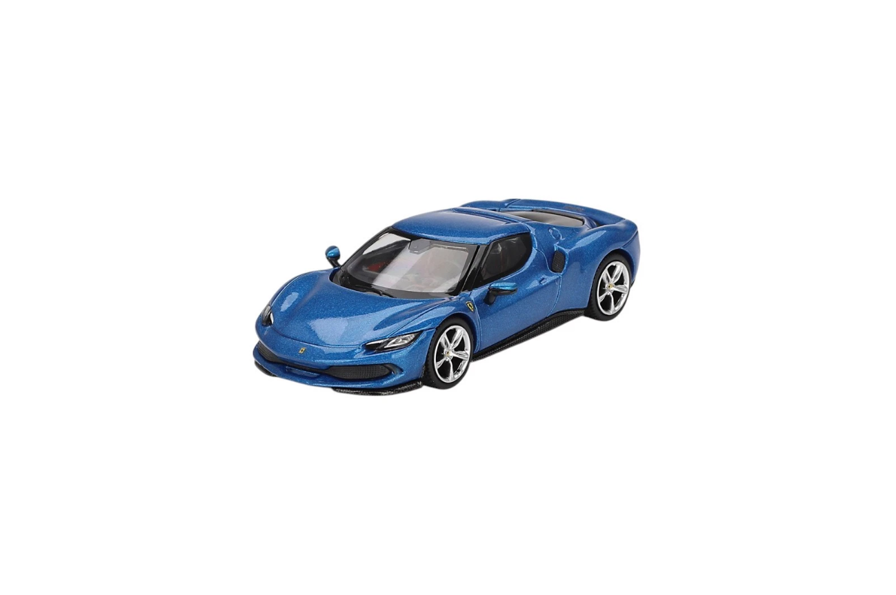 Model Ferrari 296 GTB – 2024, blu corsa wykonany w skali 1:64 przez producenta BBR Models