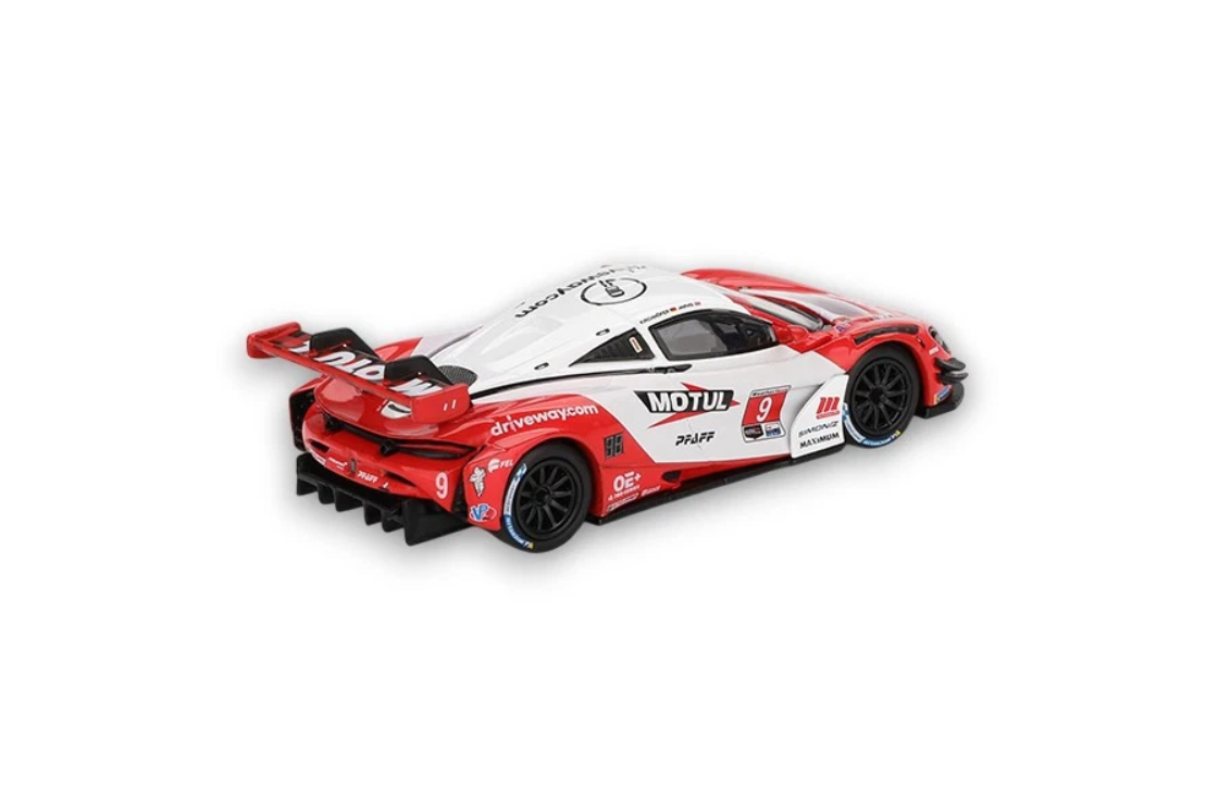 Model McLaren 720S GT3 EVO #9 PFaFF Motorsports Laguna Seca – 2024 wykonany w skali 1:64 przez producenta Mini GT