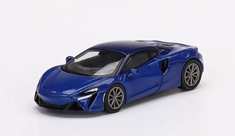 Model McLaren Artura Volcano, blue wykonany w skali 1:64 przez producenta Mini GT