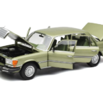 Model został wykończony w eleganckim kolorze Silver Green, który doskonale podkreśla ponadczasową linię klasy S z lat 70. Duża skala 1:18 pozwala cieszyć się bardzo wysokim poziomem szczegółowości – od realistycznego wnętrza, przez precyzyjnie odwzorowane elementy karoserii, po dopracowane detale chromowane.