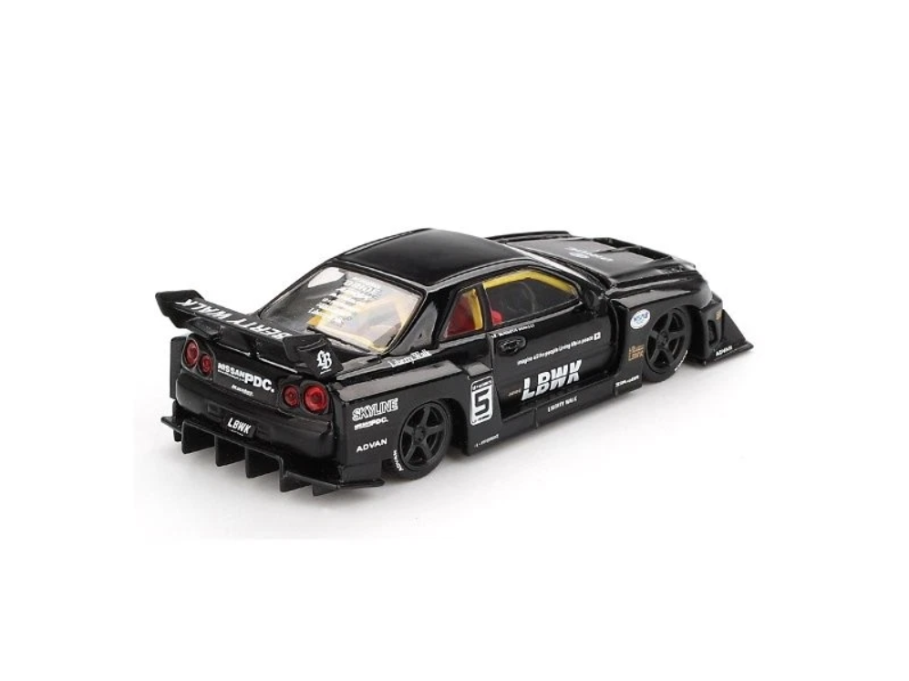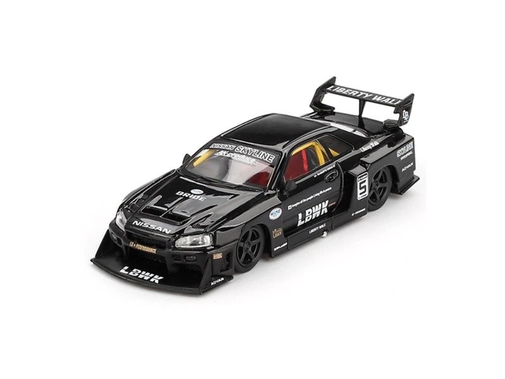 Model Nissan LB-ER34 Super Silhouette – 2024 , skyline black wykonany w skali 1:64 przez producenta Mini GT