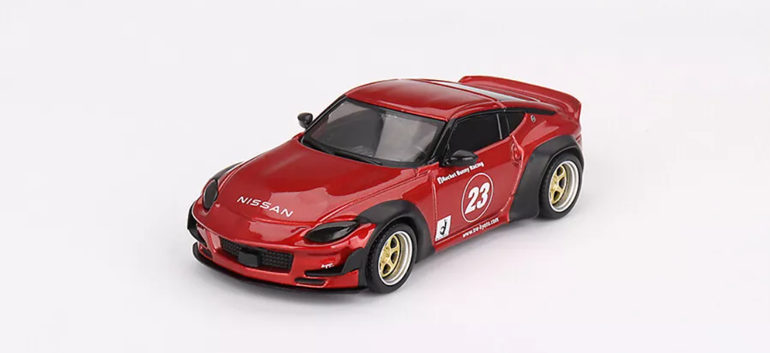 Model Nissan Z400 Pandem – 2023, red wykonany w skali 1:64 przez producenta Mini GT