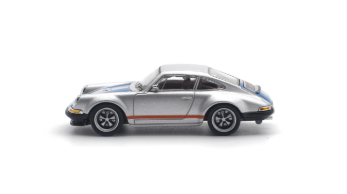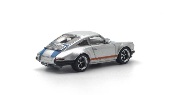 Model Porsche 911 Singer, silver/blue wykonany w skali 1:64 przez producenta Pop Race